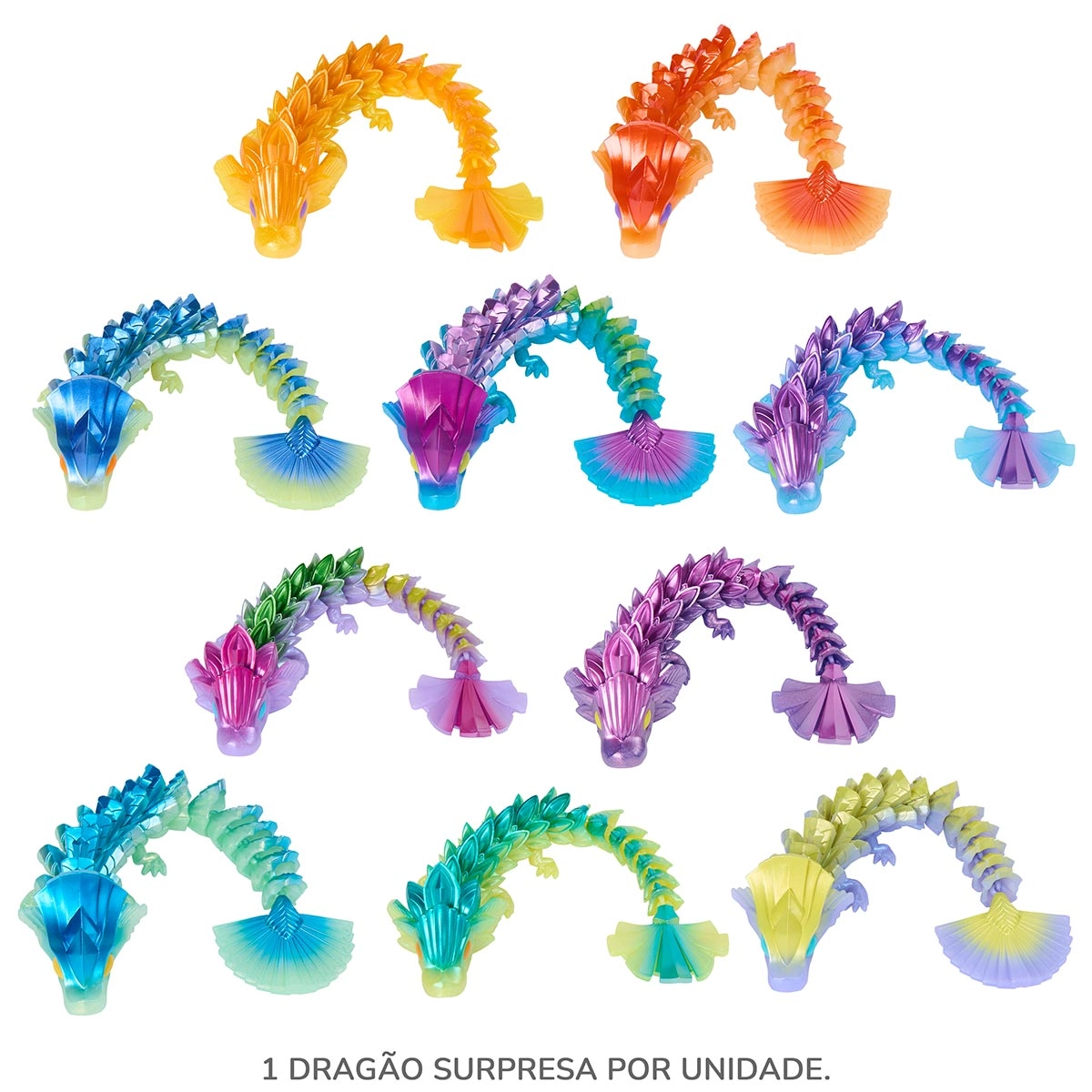 <span>Cada dragão articulado de 22cm apresenta cores vibrantes e únicas, com articulações que permitem criar poses dinâmicas e explorar diferentes combinações. O recurso Mix & Match possibilita acoplar os dragões entre si, for