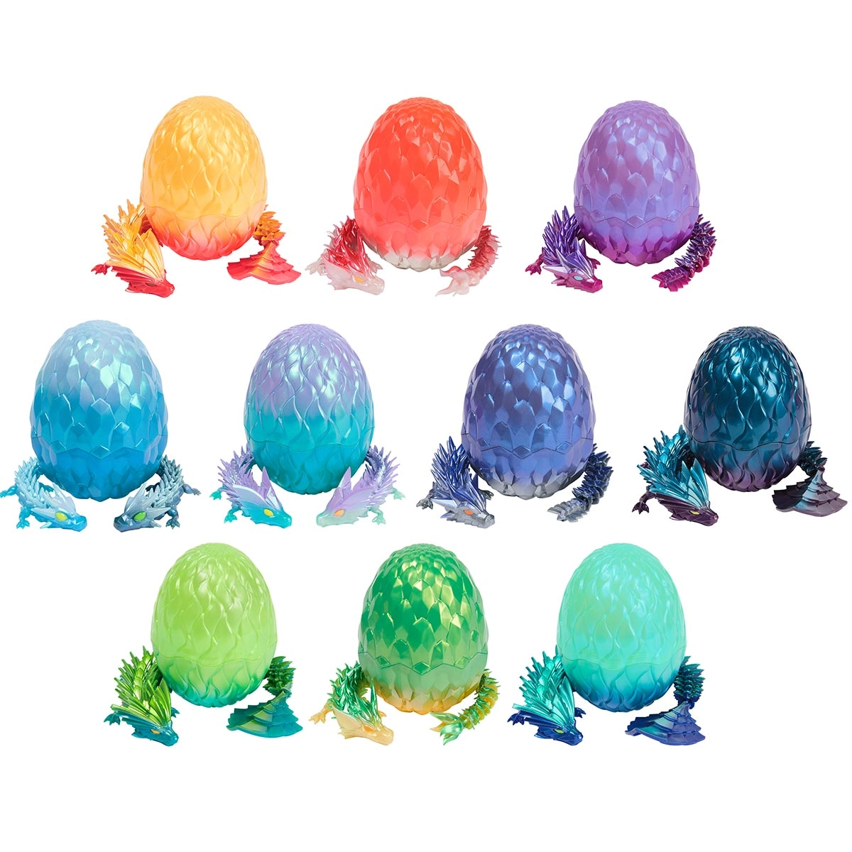 Dentro de cada ovo, um dragão articulado de 30cm revela sua surpresa, com cores vibrantes e únicas em cada modelo. Cada figura apresenta articulações que permitem poses dinâmicas e o recurso de acoplamento entre dragões, possibilitando criar combinações diferentes e novas aventuras. Entre as surpresas, há uma edição rara: Twins, com design especial e cores ainda mais marcantes. Cada dragão transforma a abertura do ovo em uma experiência de descoberta e diversão mágica.