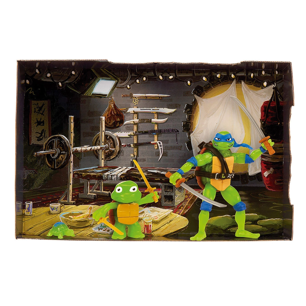 Quando as Tartarugas caem no esgoto e são encharcadas com um lodo misterioso, elas se transformam em crescentes e brilhantes Tartarugas Ninja! Veja a evolução de sua Tartaruga Ninja favorita! Todas as 3 Tartarugas neste pacote vêm com um toque especial - à noite elas se iluminam e brilham no escuro, um efeito colateral do lodo mutagênico! Alem disso, o conjunto vem embalado em uma caixa com um cenário ilustrado altamente detalhado do dojo de treinamento das Tartarugas!
