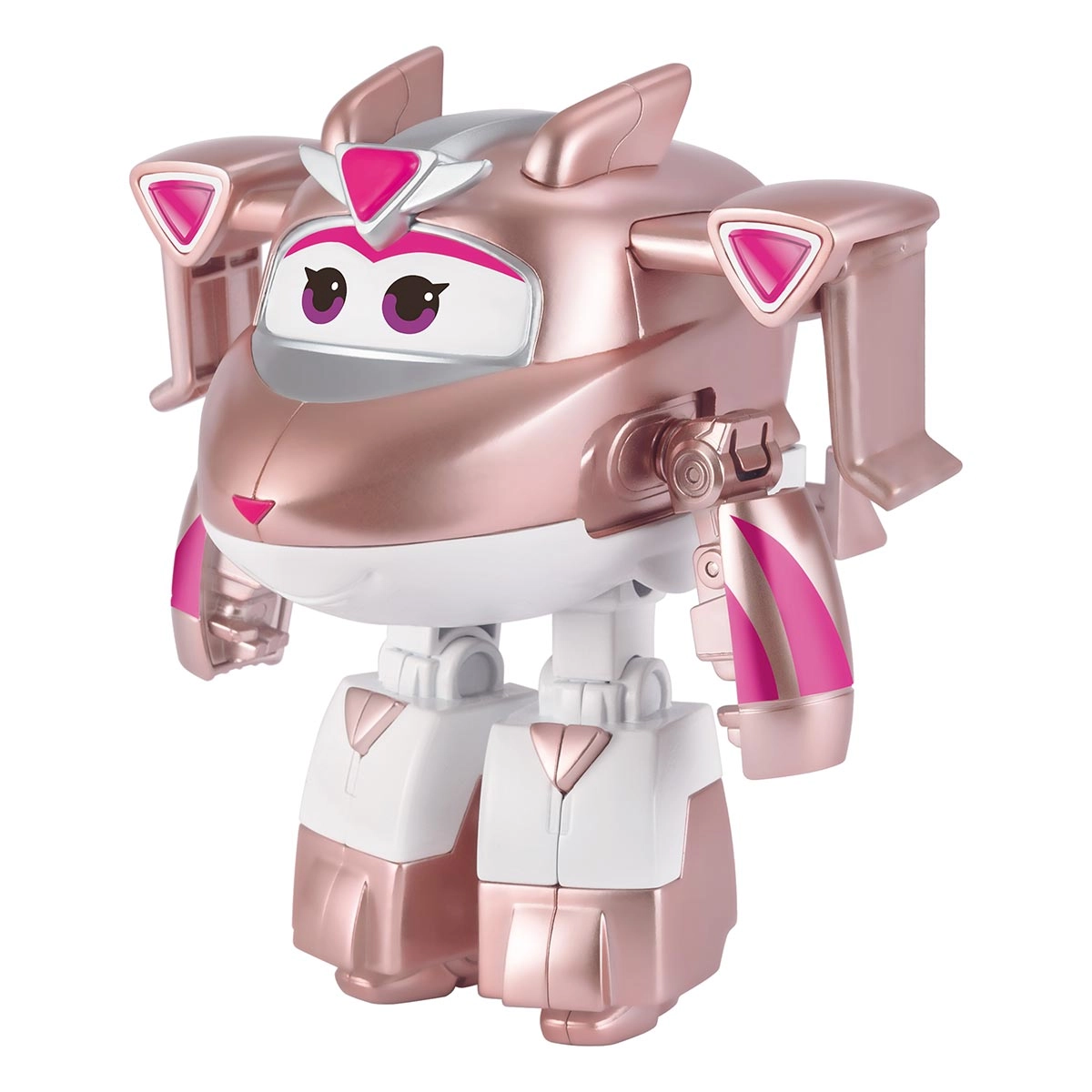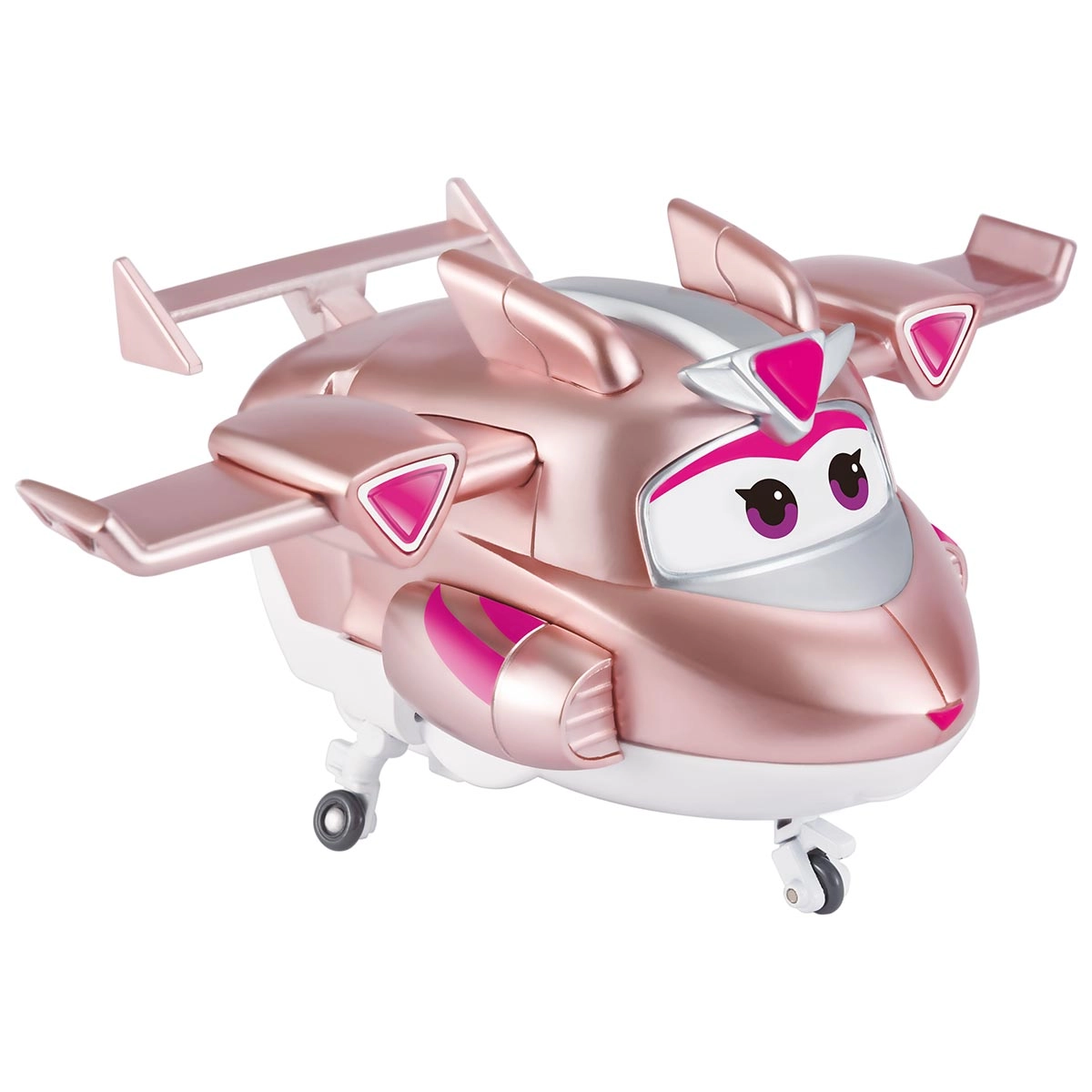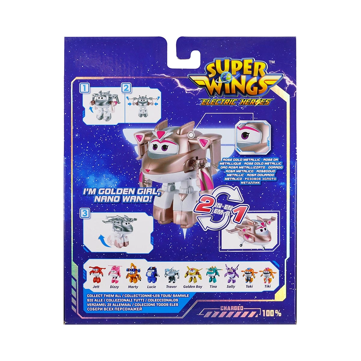 As figuras 2 em 1 da linha Super Wings oferecem diversão transformável, passando de avião a robô com braços, pernas e rodas articuladas. Cada personagem proporciona brincadeiras cheias de criatividade e imaginação. Os sortimentos incluem Jett, Golden Boy, Traver, Golden Girl, Marty e Dizzy, todos vendidos separadamente. Com aproximadamente 12 cm, as figuras podem ser usadas junto a outros veículos e personagens da série, possibilitando recriar missões, explorar mundos imaginários e vivenciar histórias de amizade, coragem e colaboração inspiradas no universo Super Wings.