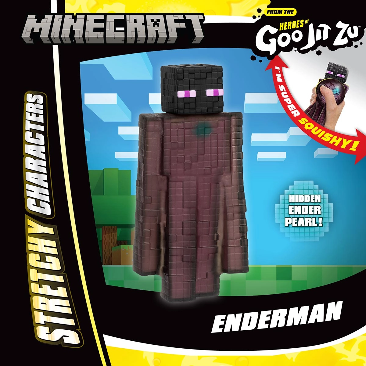 No universo pixelado de Minecraft, o Enderman ganha vida na forma elástica e flexível do Goo Jit Zu. Essa figura apresenta o misterioso Enderman envolto em um brilho roxo cintilante, com a pérola de ender incorporada em seu corpo, trazendo a magia do mundo Minecraft para cada movimento. A textura maleável convida a sentir a aventura de explorar blocos infinitos, misturando diversão e a sensação única de estar dentro do jogo. Uma peça que transforma a imaginação em movimento.