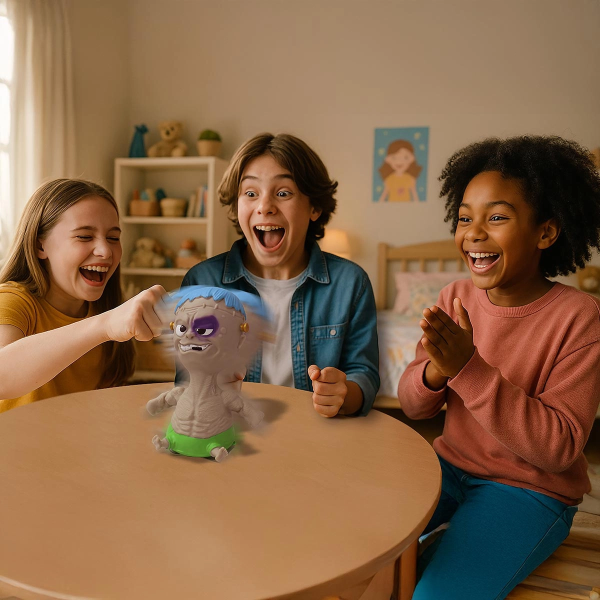 Puncheezz transforma qualquer momento em uma explosão de risadas e alívio. Com mais de 30 sons e expressões engraçadas, essa figura interativa cria uma experiência cheia de humor e estímulos sensoriais. O corpo flexível, com braços elásticos e sensor de impacto, reage a cada toque com reações inesperadas. As ventosas na base ajudam a manter a estabilidade, enquanto o enchimento com fibras e ar oferece uma textura macia e única. Uma proposta divertida para liberar tensões e deixar o dia mais leve. REGISTRO INMETRO 007687/2025