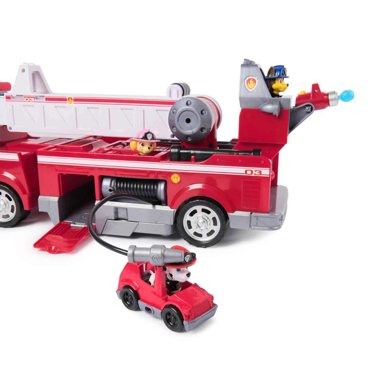 Salve o dia com o Caminhão de Bombeiros Ultimate do Marshall! Equipado com uma escada extensível de 60cm, um mini carrinho de bombeiro, luzes e sons, este caminhão de bombeiros está pronto para missões cheias de ação! Use os lança
