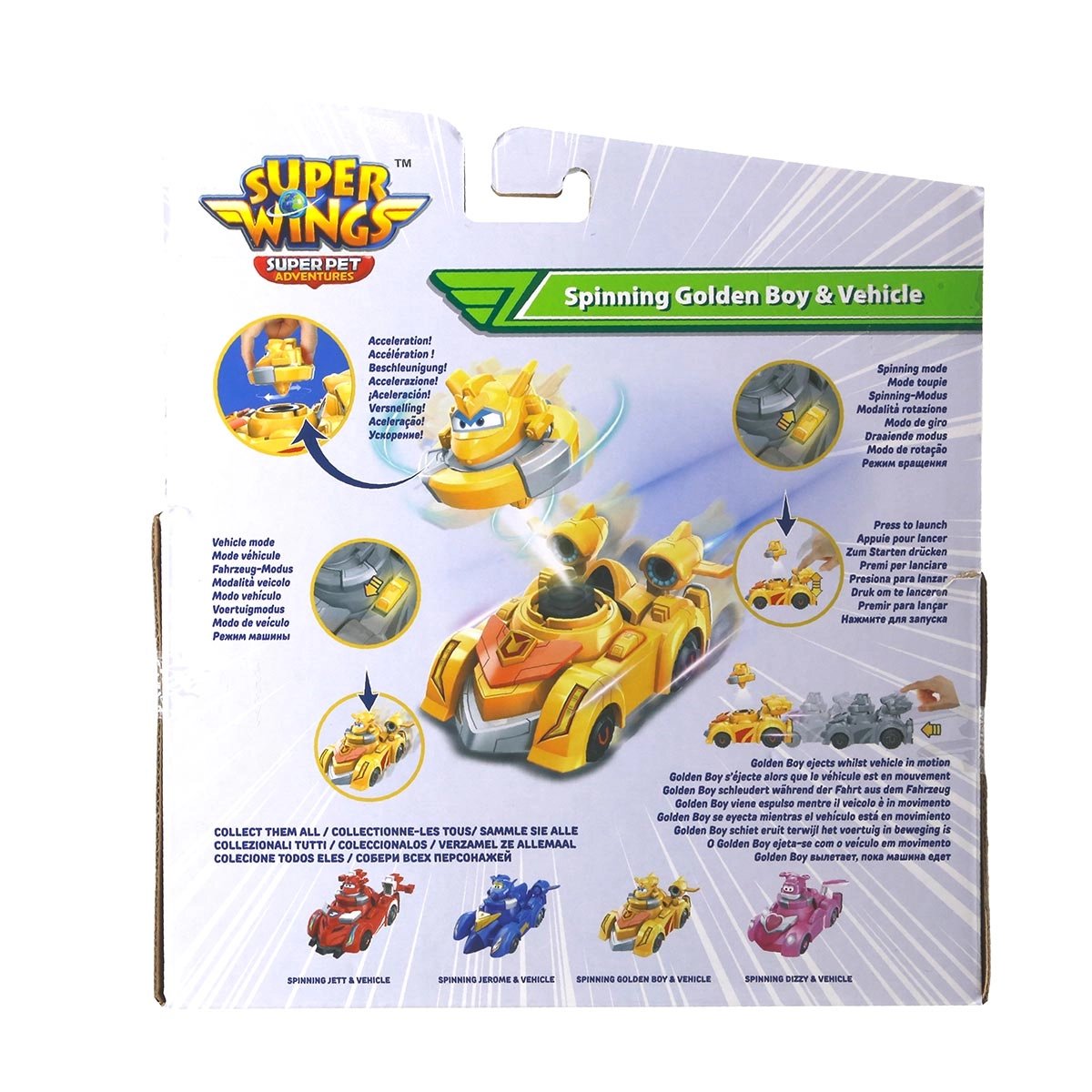 Os carros da equipe Super Wings ganham vida com dois modos de diversão: modo carro e modo giratório. No modo giratório, a figura acoplada é lançada enquanto o veículo está em movimento, criando momentos cheios de ação e surpresa. No modo carro, o veículo rola livremente, mantendo a figura segura a bordo. Cada personagem — Jett, Dizzy, Jerome e Golden Boy — apresenta cores vibrantes e detalhes inspirados na série, permitindo imaginar aventuras pelos céus e em solo. Compactos, interativos e sem necessidade de baterias, esses veículos transformam qualquer espaço em um mundo cheio de velocidade, amizade e magia dos Super Wings.