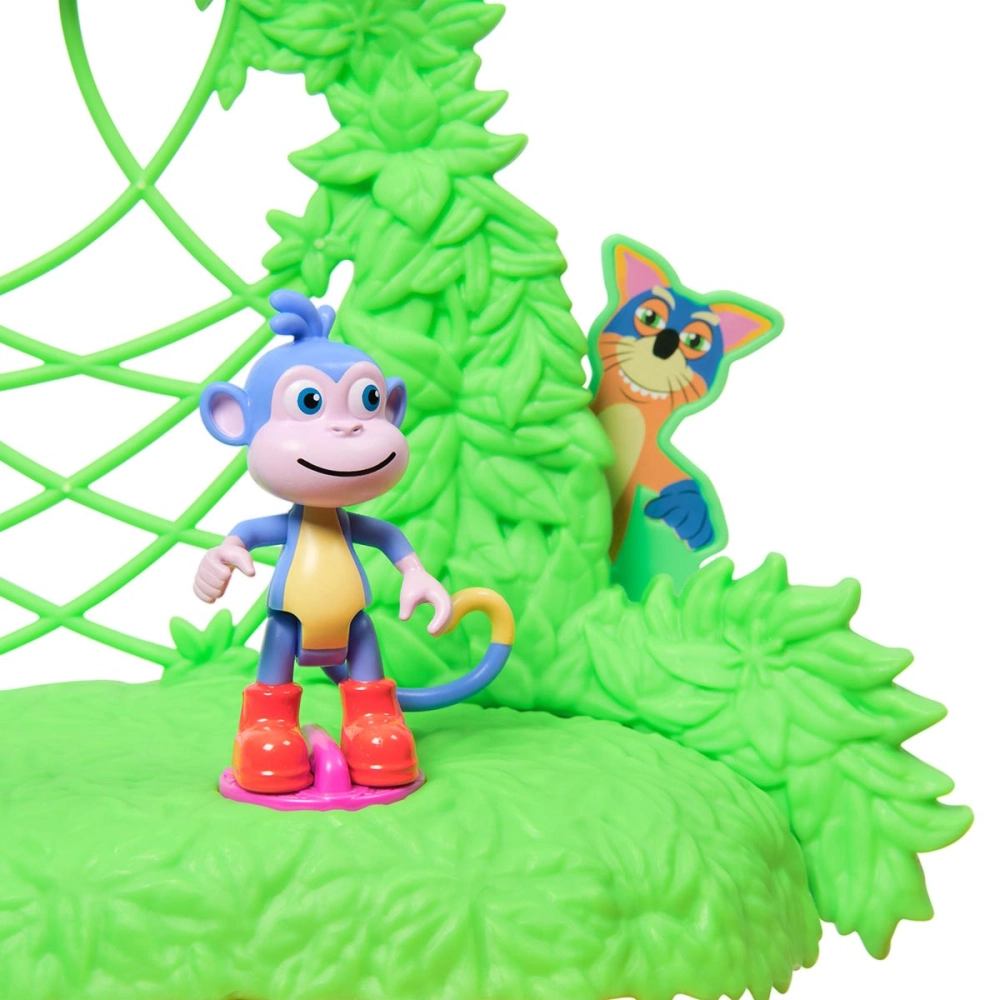 Na floresta encantada de Dora, a Aventureira, diversão e imaginação se encontram na Rainforest Casita. Este playset vibrante traz uma casinha de dois andares com cômodos detalhados, conectada a uma charmosa casa na árvore com escorregador e balanço. Sons, músicas e um espaço colorido para dançar recriam a energia alegre das aventuras da série. A casita se transforma, revelando novas possibilidades de brincadeira. As figuras podem se pendurar pelos galhos, explorando cada cantinho. Acompanha 2 personagens, 8 acessórios, 1 cartinha, adesivos e manual. Figuras adicionais vendidas separadam