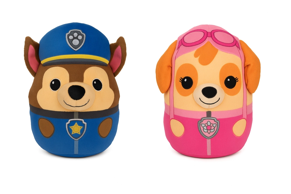 O Kit Squish Chase + Skye traz os dois filhotes mais amados da equipe em formato arredondado e supermacio, perfeitos para apertar, abraçar e decorar o quarto das crianças.