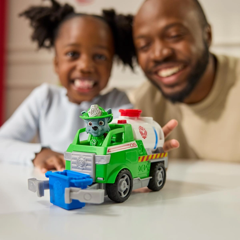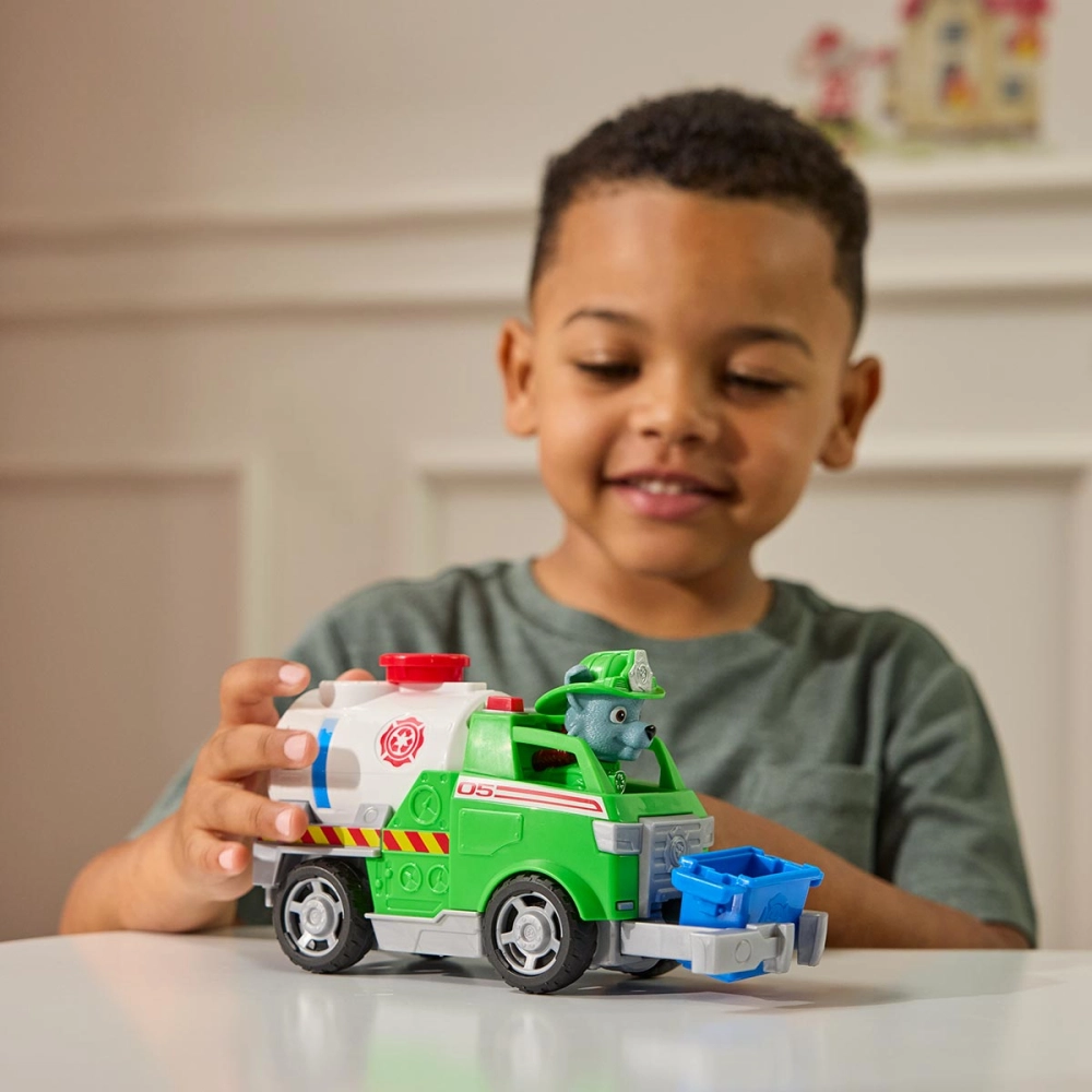 O Caminhão de Lixo do Rocky da Patrulha Canina oferece uma oportunidade única para as crianças se aventurarem no mundo das missões de resgate. Inspirado em Patrulha Canina: Fire Rescue, o corajoso Rocky assume o comando de um tanq