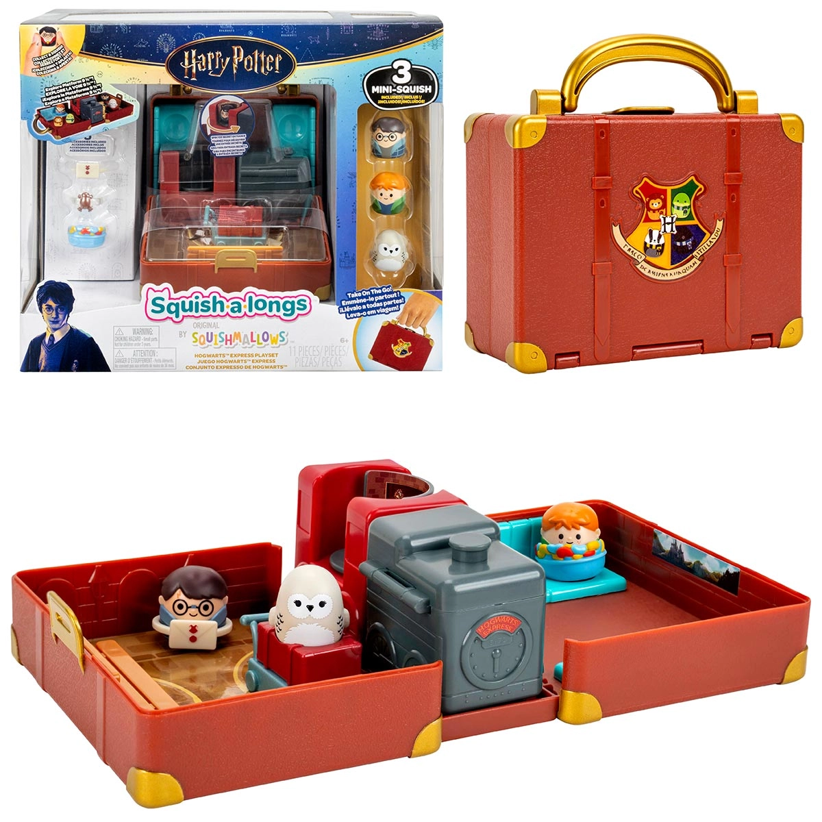Embarque no universo mágico com o playset Hogwarts Express em forma de maleta, que se transforma em uma réplica encantadora da plataforma 9¾. A maleta abriga até 5 mini Squish e inclui compartimento secreto no trem para guardar acessórios. O conjunto conta com 3 personagens inclusos, banco interno detalhado e entrada giratória para maior diversão. Ideal para criar aventuras inspiradas no mundo de Harry Potter, o playset combina praticidade para transporte com elementos interativos e cenários mágicos que estimulam a imaginação. REGISTRO INMETRO 004078/2021.